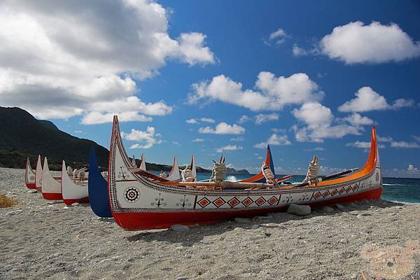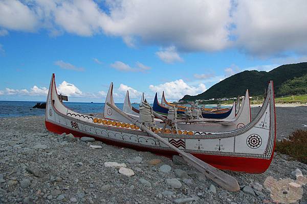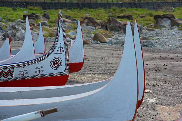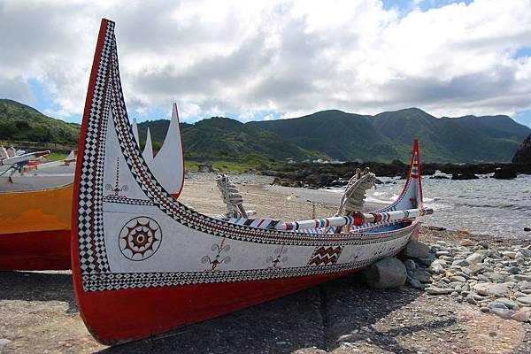 紅頭部落沙灘上的拼板舟